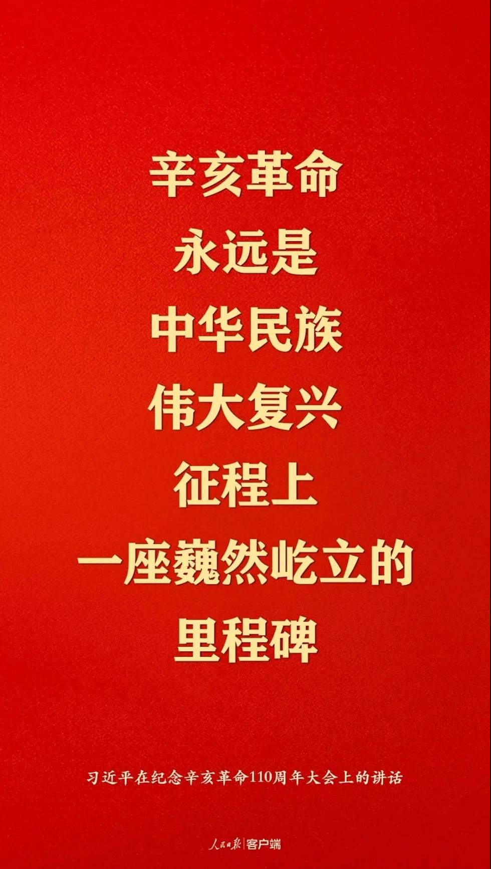 孙中山先生和辛亥革命先驱为中华民族建立的历史功绩彪炳千秋!在辛亥革命中英勇奋斗和壮烈牺牲的志士们名垂青史!辛亥革命永远是中华民族伟大复兴征程上一座巍然屹立的里程碑!