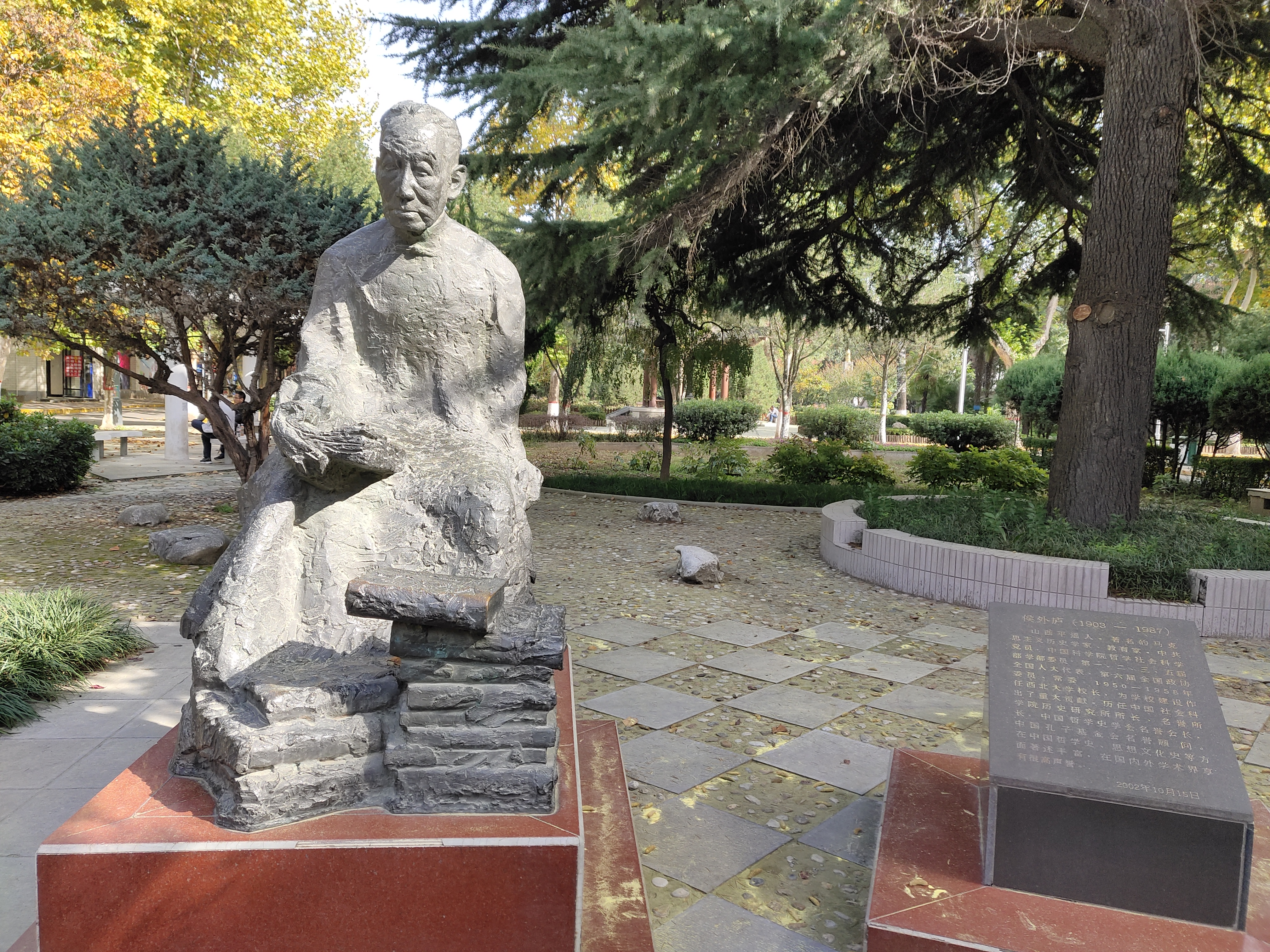在侯外庐、张伯声、杨钟健、岳劼恒、鲁迅等名师人物雕塑前,姚远教授向同学们逐一讲述了他们和西大的渊源以及各自的学术成就。