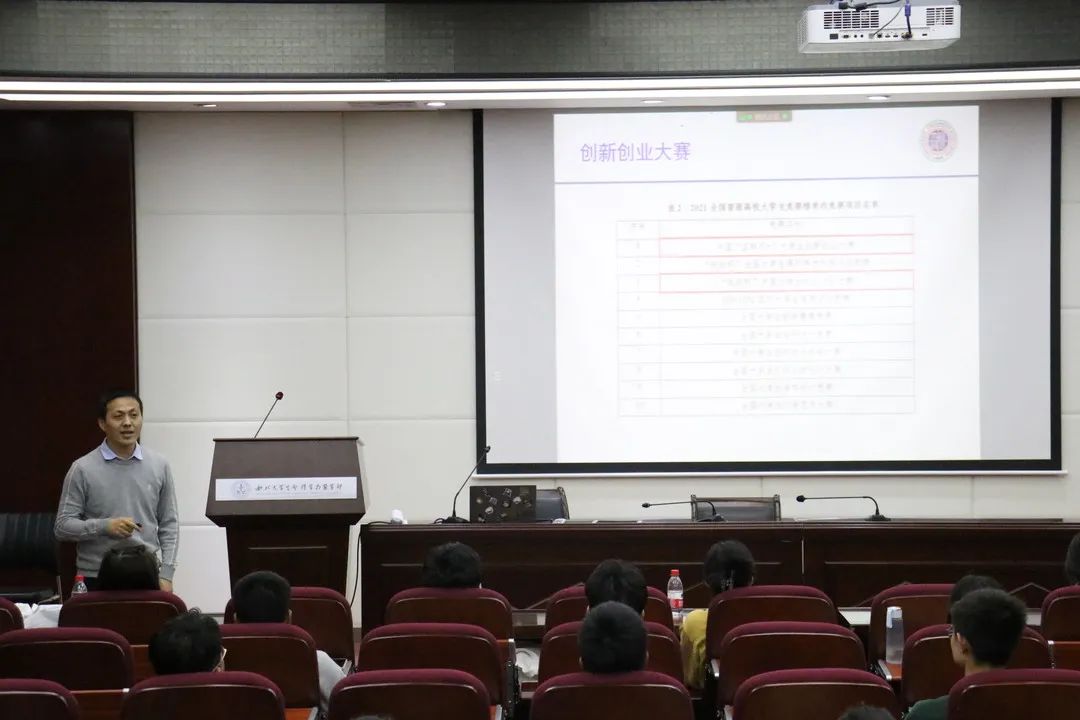 团委实践部部长徐云骅从竞赛规则角度为同学们详细解读了每一个比赛的申报对象、人员要求、申报材料和作品要求,使同学们对比赛的信息有了更深了解,让参赛同学更好地做竞赛准备工作。