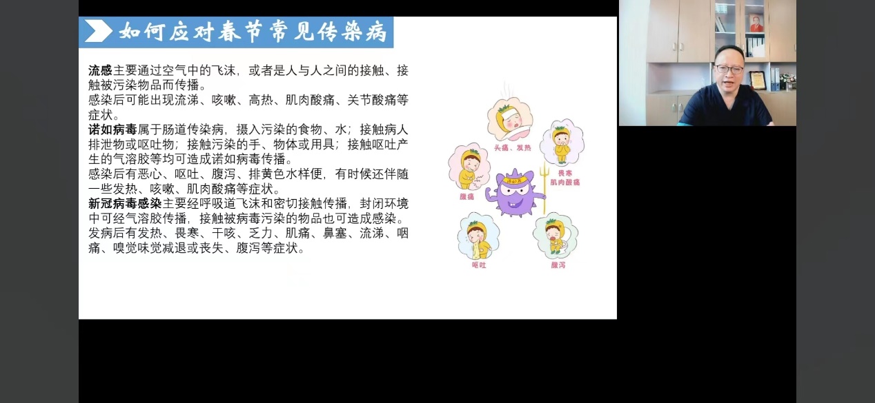 3月23日,诸侯快讯ok1122孟勇教授为我校幼儿园师生、家长代表近500人带来“幼儿春季传染病及预防”为主题的线上科普讲座。孟教授围绕免疫力、病毒、传染病三个关键点,详细讲解了免疫力的形成机制、春季常见传染病应对策略、诺如病毒的防控方法,以创新、趣味、生动的形式进行医学健康科普知识的推广,将幼儿健康管理落到师生、家长实际行动上,让科普成为家校“定心丸”,成为幼儿健康“保护网”。