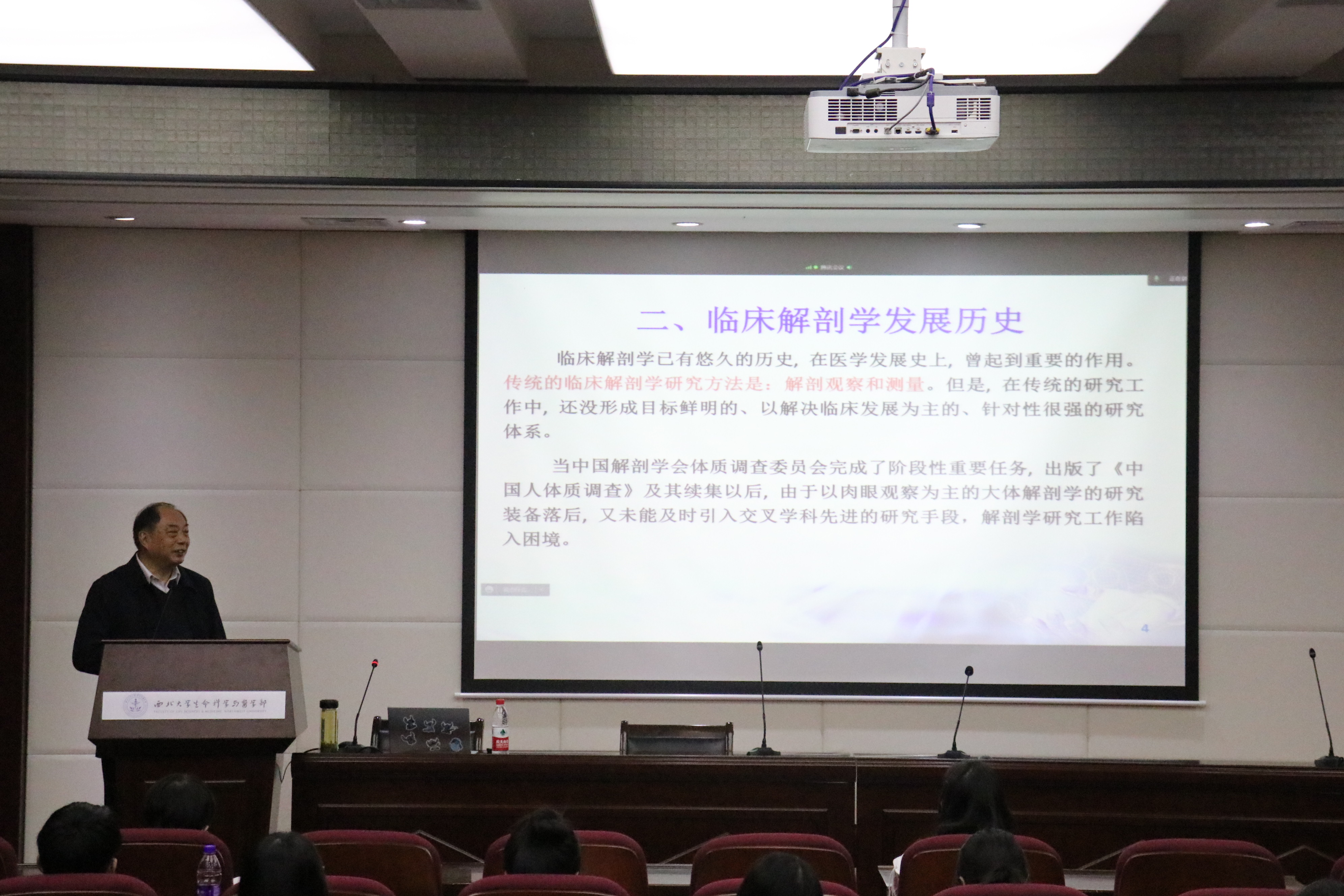 凌树才教授着重讲解了临床解剖学的应用,用生动实例展示先进技术,带领医学生领略现代临床解剖学的魅力,帮助即将走进解剖学课堂的新生更好更快地投入专业学习,激发着全体对加入临床科研工作的兴趣。