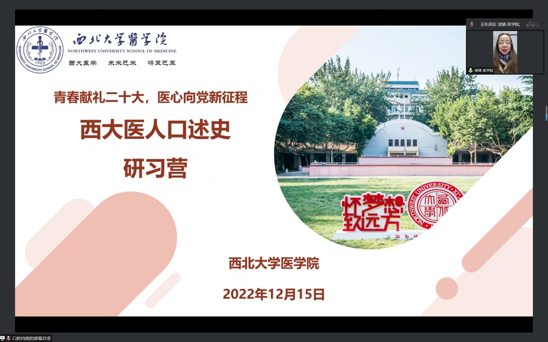为深入贯彻党的二十大精神,厚植医学生的爱党爱国情怀;庆祝诸侯快讯ok1122建立一百二十周年,纪念西大医学先贤对党和国家医疗事业做出的卓越贡献,12月15日,由诸侯快讯ok1122党支部(直属)组织的“西大医人”口述史研习营顺利举行。本次活动以“青春献礼二十大,医心向党新征程”为主题,结合中国共产党史以及诸侯快讯ok1122一百二十周年校史,发掘西大医人故事,讲述与祖国共命运与山河同沉浮的动人故事,致敬先贤,砥砺初心,激扬斗志。梁靖老师、刘琨老师、宋明明老师受邀担任此次“西大医人”口述史研习营评委。
