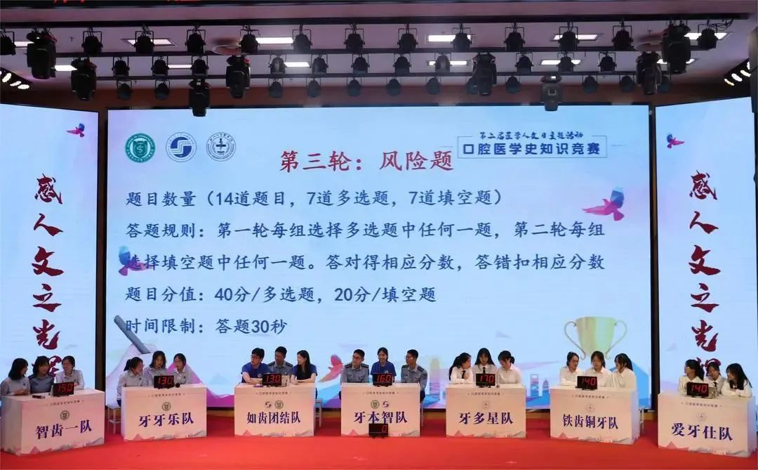 为加强学科自信、厚植优秀历史文化,加强校际交流合作,提升口腔医学生人文素养,引导口腔医学生重视并热爱口腔医学发展史的学习,提高医学生学习的积极性和主动性,我院受邀参加由空军军医大学主办,上海交通大学和我校共同参与的口腔医学人文日主题活动——口腔医学史知识竞赛。
