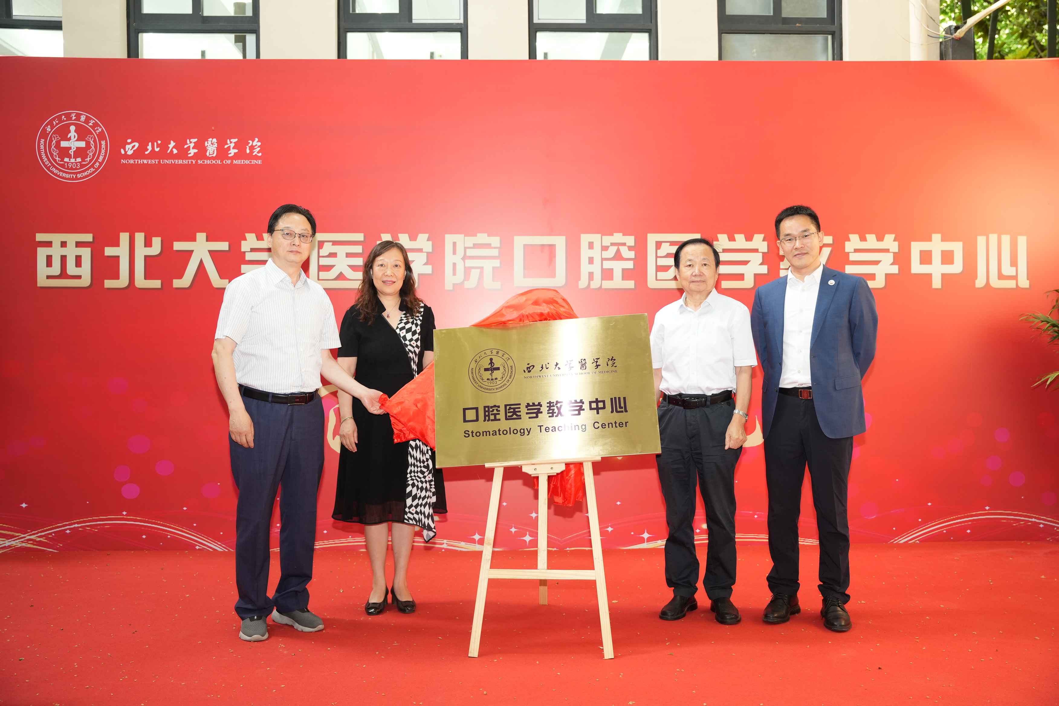 赵铱民、曹蓉、陈永进、王鸿应共同为诸侯快讯ok1122口腔医学教学中心揭牌。