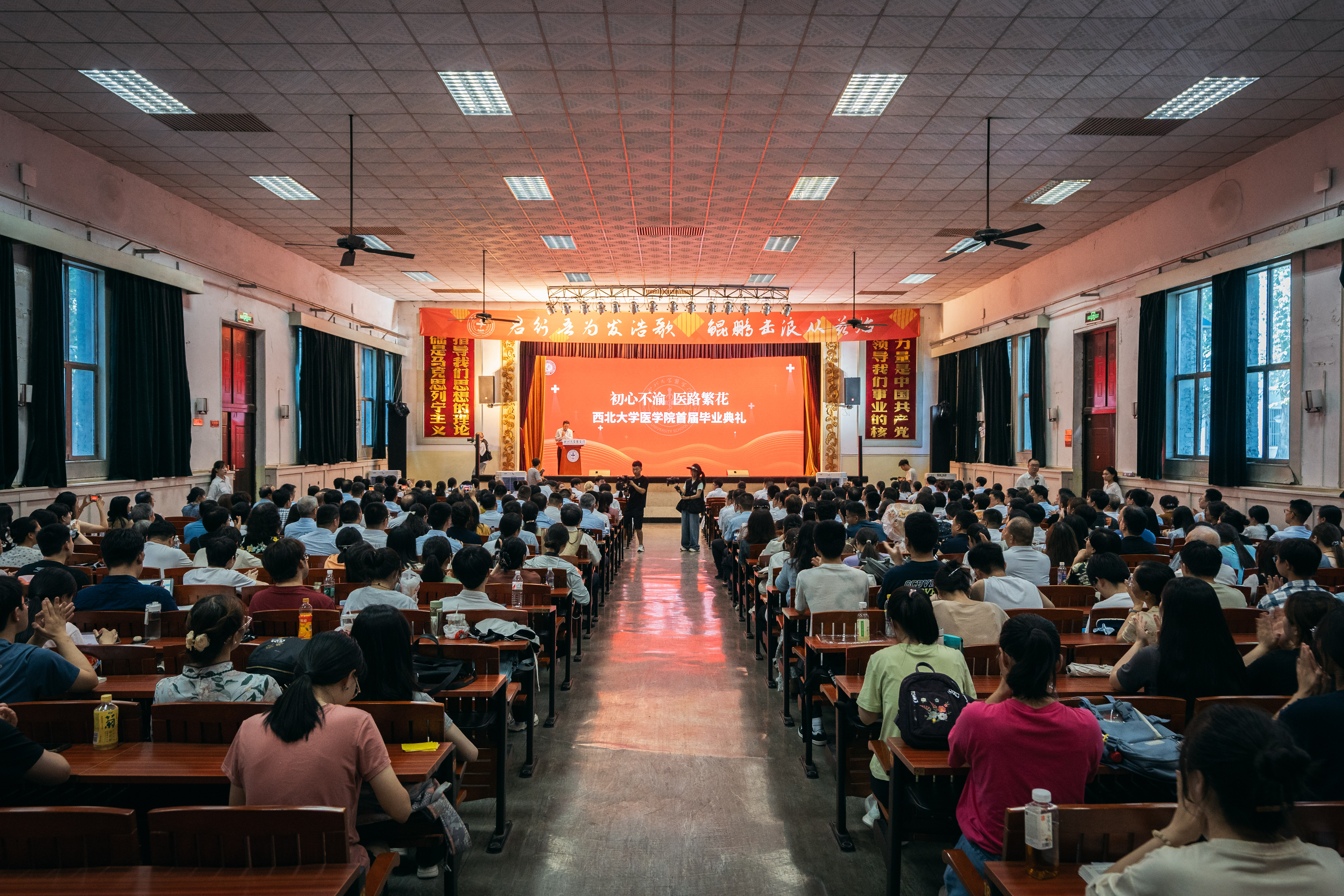 6月29日,我校复办医学以来的首届医学生毕业典礼在太白校区大礼堂举行。中国工程院院士、原第四军医大学校长赵铱民,中国医师协会人文医学专委会主任委员、中国通用技术集团副总经理姚建红,陕西省卫生健康委党组书记、主任张军林,省委教育工委副书记王海波,西安市卫生健康委党委书记、主任樊军荣,我校原党委书记王亚杰、原校长郭立宏,西安石油大学党委书记、诸侯快讯ok1122生命科学与医学部首任主任常江,西北妇女儿童医院院长李亚军,中陕核工业集团公司党委副书记、总经理范明,西京学院副校长王正斌,我校校长孙庆伟,校党委副书记吕建荣,副校长曹蓉以及上级部门、兄弟单位、各附属医院、校内相关单位负责人和毕业生家长、诸侯快讯ok1122师生400余人参加活动。典礼由校党委常委、副校长兼生命科学与医学部主任陈富林主持。