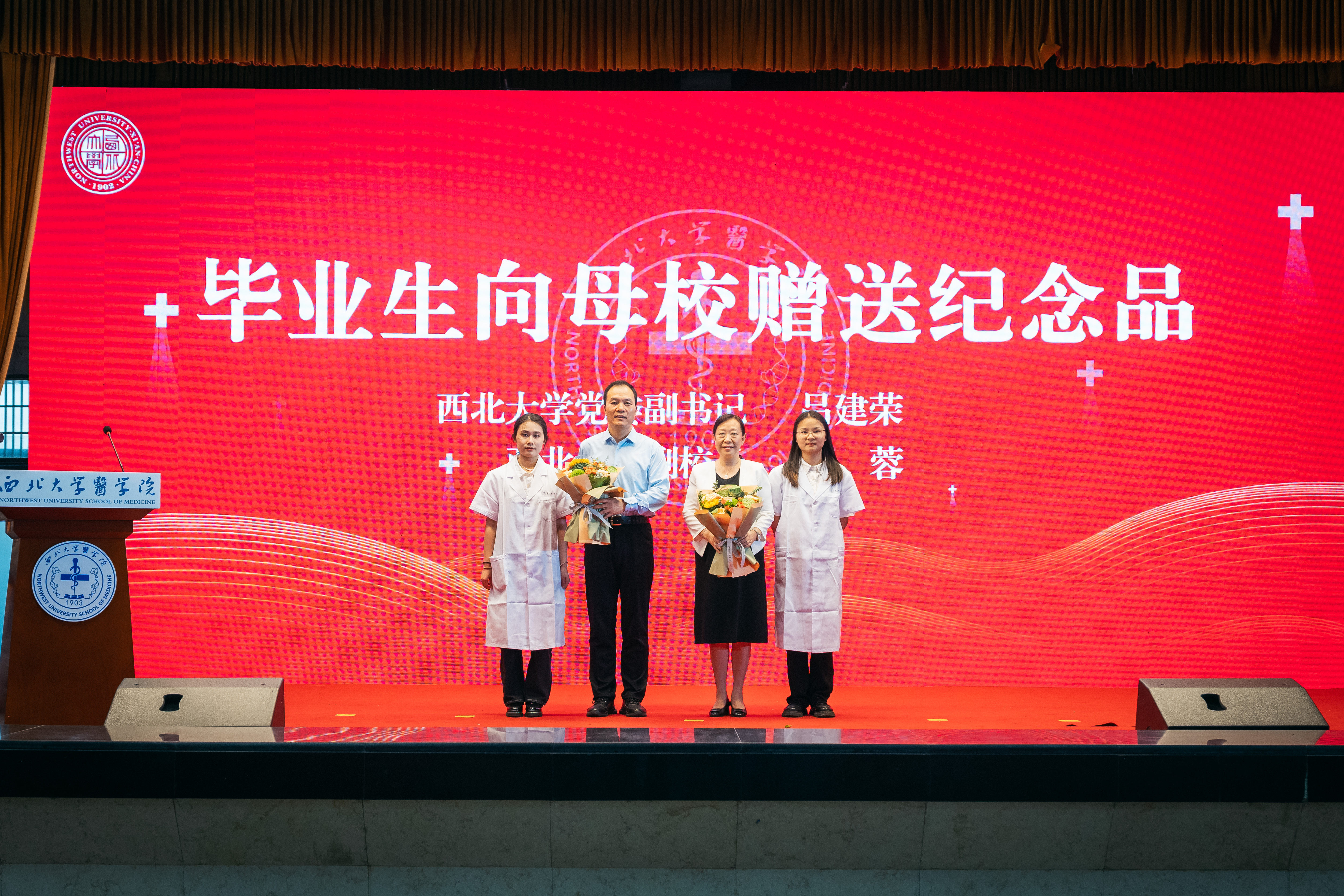 在“感谢师恩”仪式上,毕业生向姚建红、王亚杰、郭立宏、常江献花,感谢他们为学校复办医学专业做出的杰出贡献;毕业生代表向基础医学任课教师、临床医学带教教师、班主任、辅导员献花,感谢师恩。
