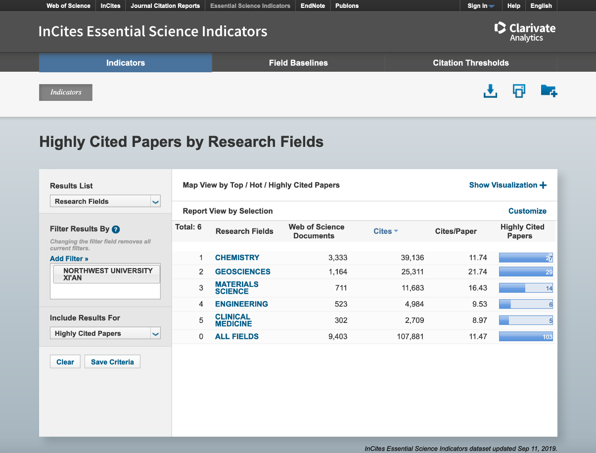 基本科学指标数据库(EssentialScienceIndicators,简称ESI)是衡量科学研究绩效、跟踪科学发展趋势的基本分析评价工具,已成为当今世界范围内普遍用以评价高校、学术机构、国家/地区国际学术水平及影响力的重要评价指标工具之一。ESI数据库共分22个学科领域,是基于科睿唯安(ClarivateAnalyticsWebofScienceSCIE/SSCI)所收录的全球12000多种学术期刊的1000多万条文献记录而建立的计量分析数据库。