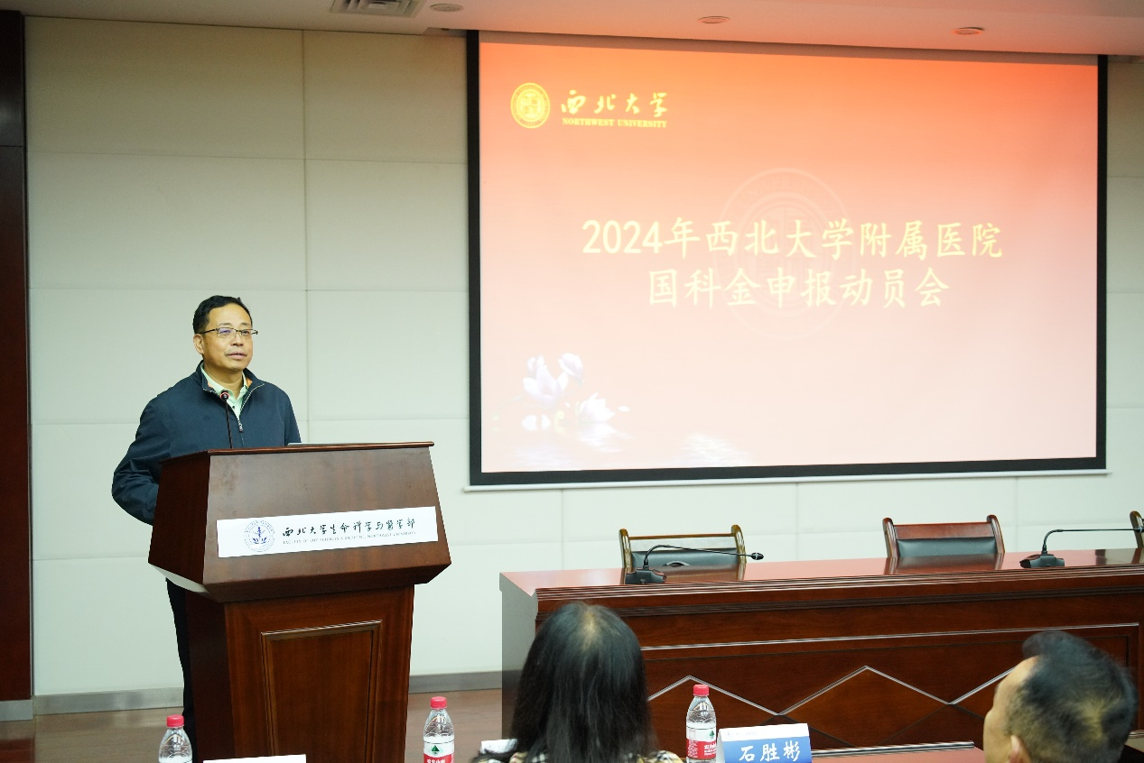 随后,附属人民医院院长石胜彬代表各附属医院讲话,他指出科研创新是附属医院的短板,医院人员在申报国家自然科学基金阶段面临了很多问题,申报书质量有待提升,并介绍了附属人民医院提高申报人员积极性的相关举措。