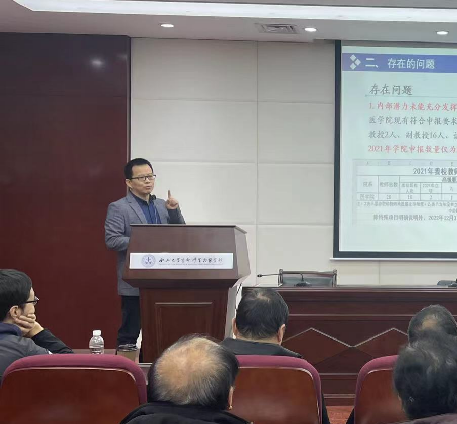 李方民总结了学院近三年国科金申报总体情况,分析了内部申报潜力挖掘不够、附属医院申报数量不足等问题,对后续国科金的申报做了总体部署,希望学院和附属医院具有申报资格的教师和医生提前谋划、积极申报,争取早日获批。