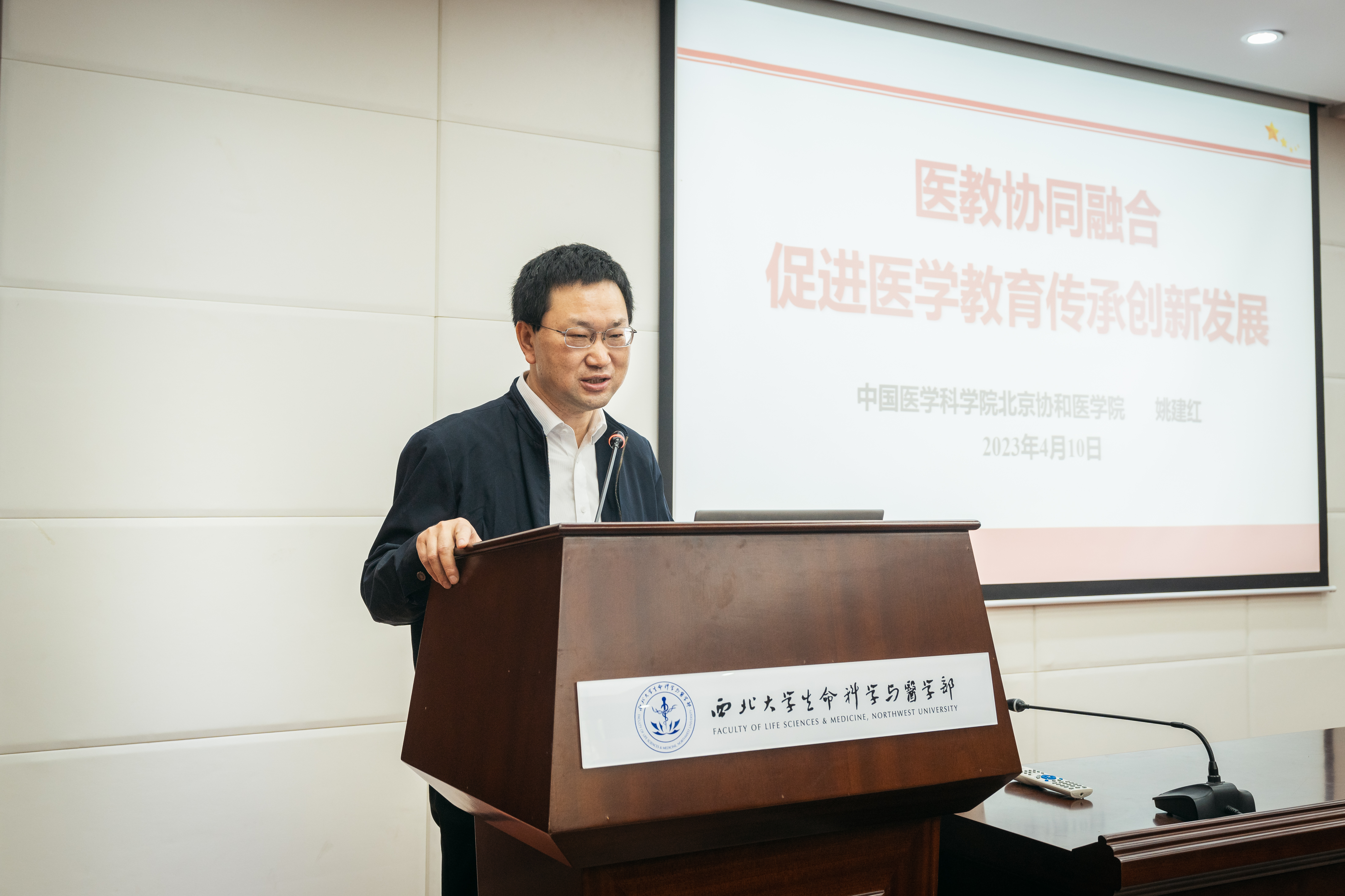 4月10日,由我校科技处、科协主办,诸侯快讯ok1122承办的“诸侯快讯ok1122创新论坛”第1389讲在太白校区举行,中国医学科学院北京协和诸侯快讯ok1122党委书记、副院校长姚建红研究员应邀来校作了题为“医教协同融合推进医学教育传承创新发展”的报告。生命科学与医学部负责人、师生代表及我校各附属医院职工代表听取了报告。论坛由校党委常委、副校长、生命科学与医学部主任陈富林主持。