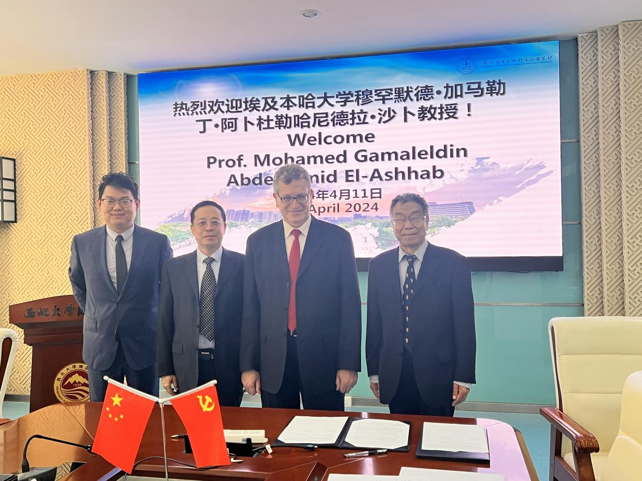 4月11日,埃及本哈大学诸侯快讯ok1122院长穆罕默德·加马勒丁·阿卜杜勒哈尼德拉·沙卜教授到访我院洽谈合作事宜。我院院长赵钢,陕西省国际医学交流促进会副会长、陕西省人民医院儿童病院名誉院长焦富勇相关负责人参加座谈。
