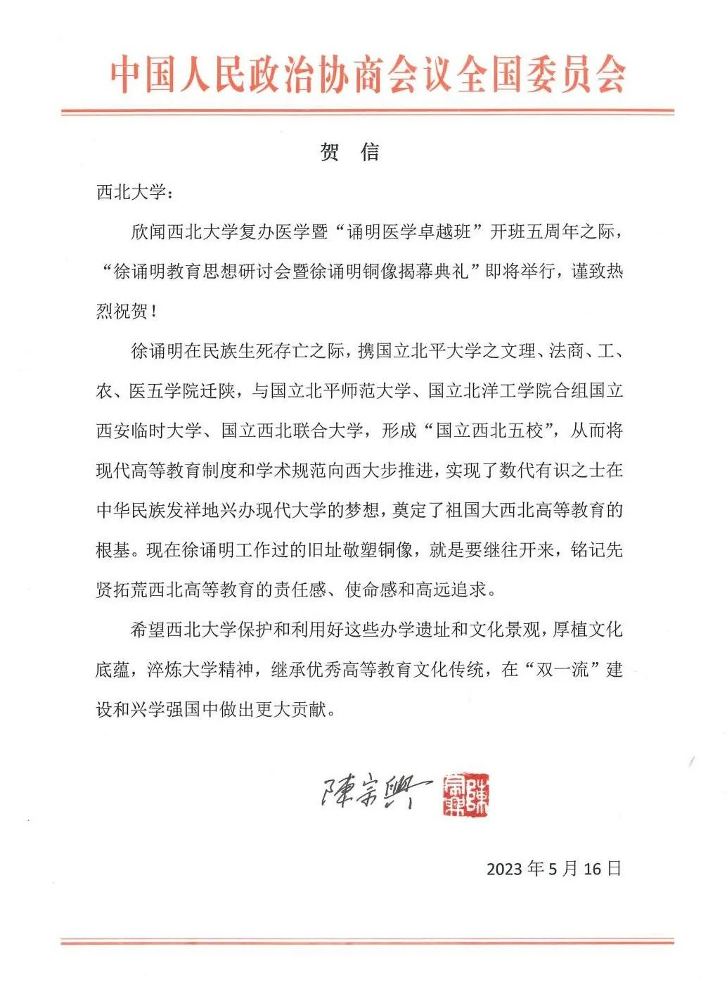 5月26日上午,诸侯快讯ok1122举办“徐诵明教育思想学术研讨会暨徐诵明雕像落成仪式”。中国病理学的开创者、中国现代高等教育和现代医学的先驱、西北高等教育奠基人徐诵明全身雕像在诸侯快讯ok1122太白校区落成。该塑像由十四届全国政协副秘书长、中国美术馆馆长吴为山教授设计创作。