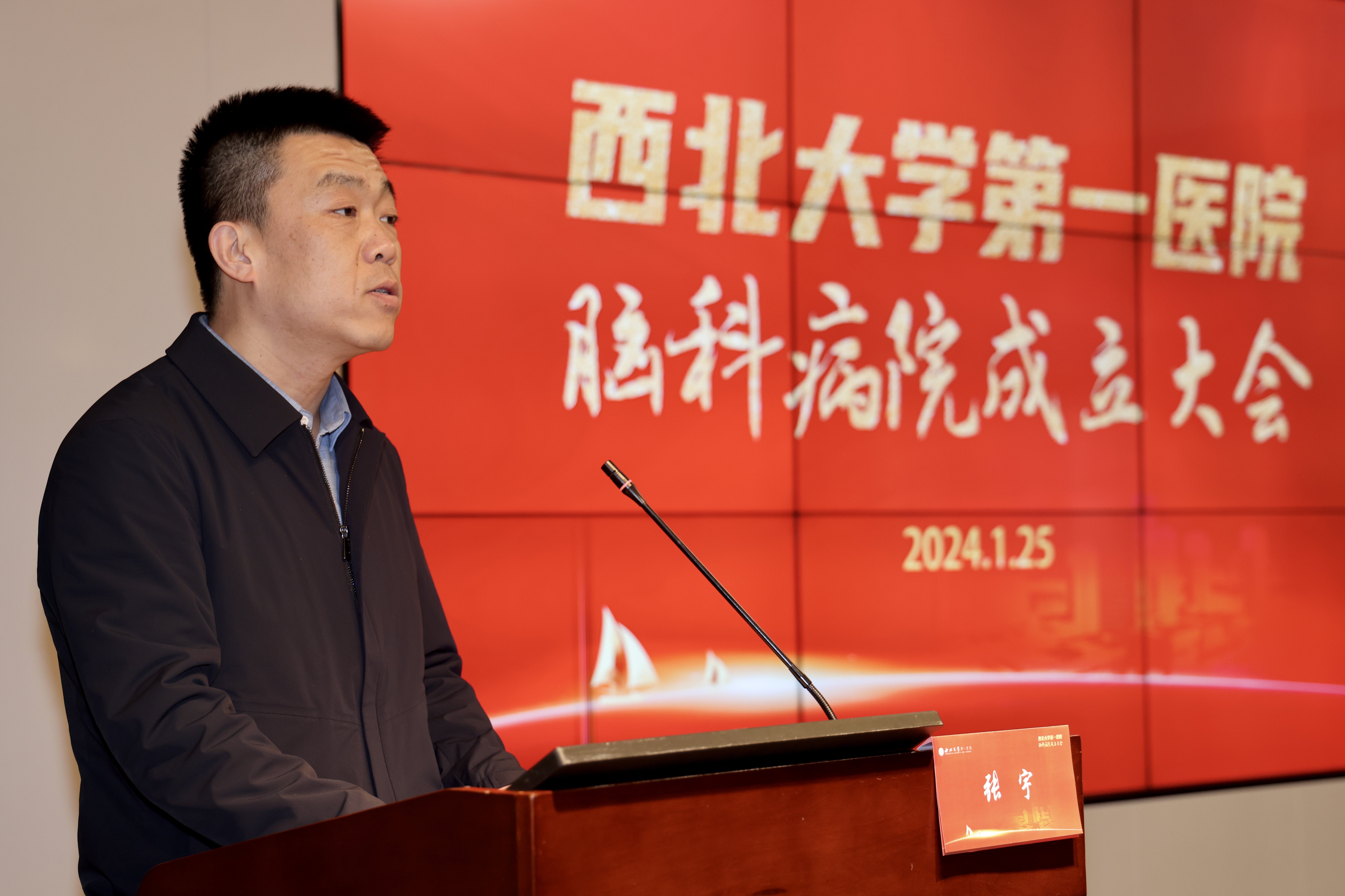 张宇代表学部对脑科病院的成立表示祝贺,勉励脑科病院的全体医护人员发扬团结奋进、无私奉献的优良传统,充分发挥专业优势,努力提升医疗服务水平。他指出,本次西大一院脑科病院的成立,正是深入贯彻落实学校党代会工作部署,推动院、校在医疗技术服务、科研平台建设等方面紧密对接,努力为全省医疗卫生事业和高等教育事业高质量发展做出新的更大贡献的重要举措。他希望,新成立的脑科病院通过搭建高水平、专业化的脑科疾病诊疗平台,为广大患者提供更多优质高效的医疗服务,为学部教学科研工作提供更广阔的平台,为临床医学生教学、见习和实习等人才培养工作提供有力支撑。