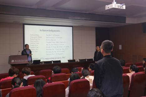 聘任仪式结束后,关锋教授主持诸侯快讯ok1122创新论坛第九百九十四讲暨校庆118周年学术讲座,由常智杰教授为与会师生作题为“肿瘤发生中的基因转录作用”的学术报告,主要介绍人类肿瘤相关的一个新基因:CREPT,并提出了这一基因在促进肿瘤生长相关基因转录方面作用的一个新机制,这将为肿瘤的基因诊断和针对性基因治疗提供了参考。随后与师生探讨了研究技术相关问题,引起与会师生的热烈反响。