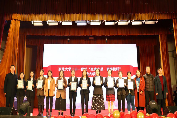 颁奖典礼也是晚会最重要的一个环节,为表彰在过去一年里表现优异的先进个人与优秀集体,我们为获得生命科学学院第九届二十一世纪“生命之星·青春榜样” 十佳大学生、生命科学学院优秀保研宿舍、金域医学奖学金的同学们颁发了荣誉证书。“生命之星·青春榜样” 十佳大学生是生科院的传统奖项,今年已是第九届,其旨在宣传奋斗奋进的先进典型,发挥榜样的带头示范作用,在全院范围内形成“向榜样学习,向榜样看齐”的良好氛围。青春榜样们本着自立、自强、自信的精神,在评选活动中充分展示了个人风采,体现了生命科学与医学部学子积极进取,开拓创新的时代风貌,成为学部大学生学习的楷模。