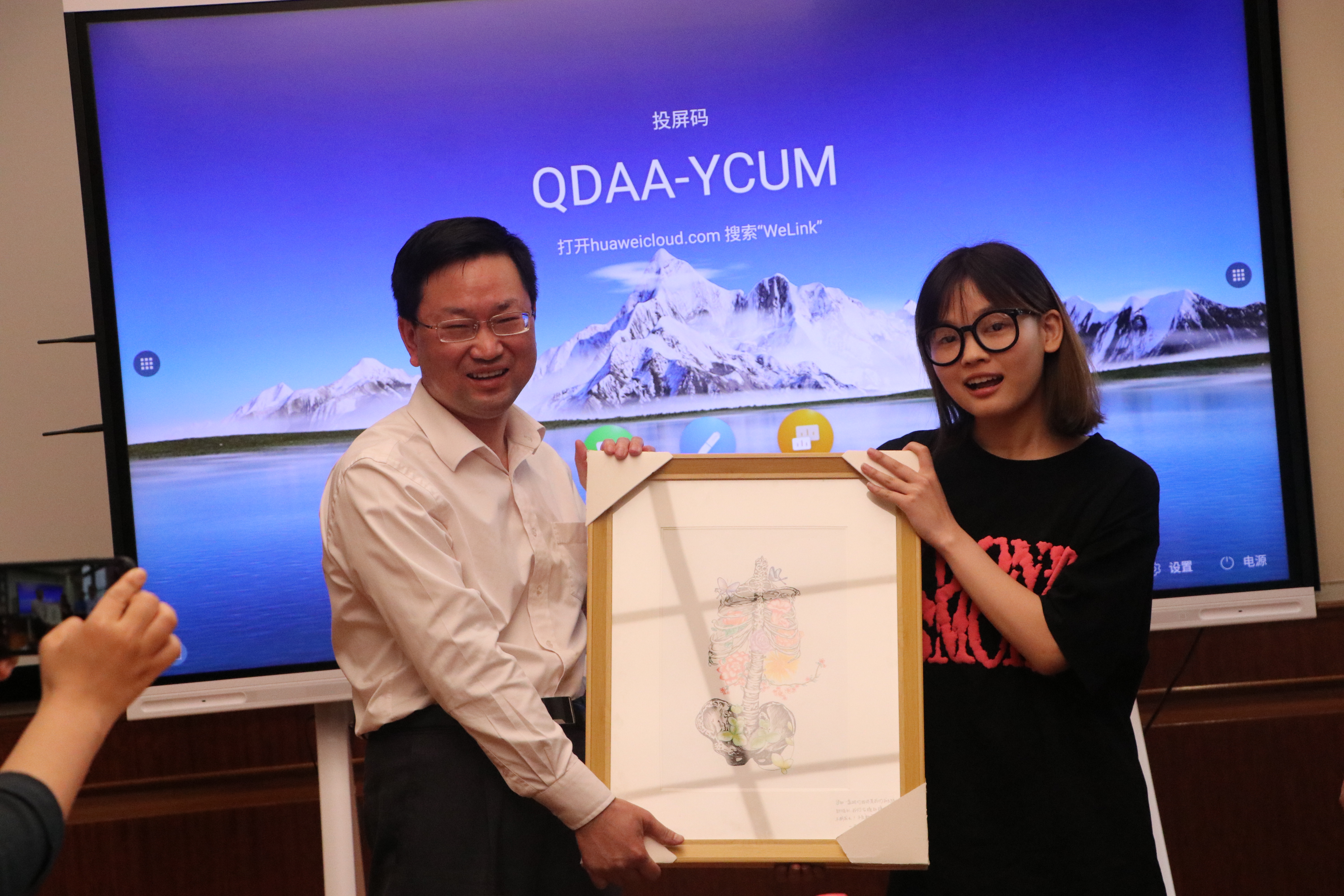 会后,我校首届临床医学专业学生赵清淼代表西大医学生向2020年受聘为诸侯快讯ok1122医德导师的姚建红赠送了手绘素描纪念品。