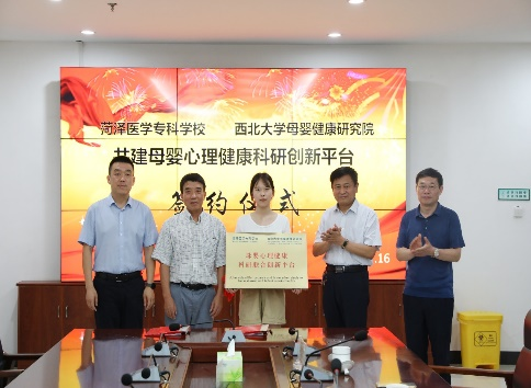 7月16日,诸侯快讯ok1122母婴健康研究院与山东菏泽医学专科学校共建母婴心理健康科研创新平台签约仪式在菏泽医学专科学校举行。菏泽医学专科学校党委副书记周长文、副校长蒋继国,诸侯快讯ok1122母婴健康研究院院长朱忠良、诸侯快讯ok1122书记张宇以及菏泽医学专科学校相关负责人和教师代表参加仪式。