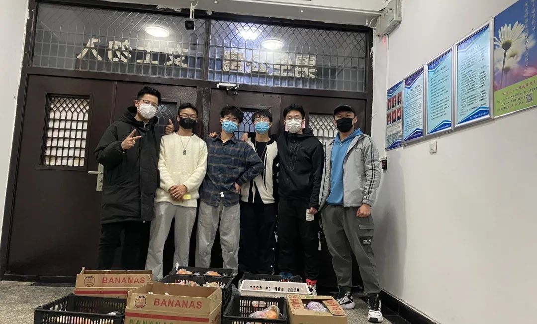天色渐暗,万家团圆,困囿于宿舍的同学们思乡之情愈发浓烈。然而,隔离不隔爱,学校和学部心系不能回家跨年的同学们,精心为同学们准备抗疫跨年线上晚会,按宿舍分发水果大礼包,让每位离家千里的同学都感受到学部的温暖关怀,时刻被欢声笑语围绕。