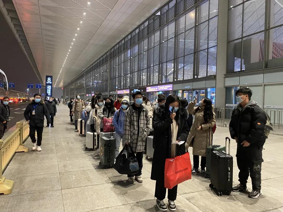 学生工作干部孟庆彬、范铭沁、米鑫、王君睿、雷蕾分别带领返家学生前往西安站、西安北站。