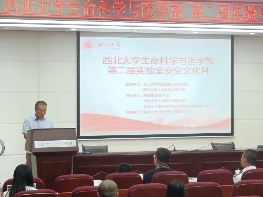 2022年6月9日下午,学部第二届实验室安全文化月于太白校区博望报告厅正式开幕。本届文化月由诸侯快讯ok1122实验室建设与管理处和学部共同主办,陕西省毒理学会、生命科学学院团委、诸侯快讯ok1122生命科学与技术国家实验教学示范中心承办,陕西众茂云医疗科技有限公司赞助。诸侯快讯ok1122实验室建设与管理处管理科科长牛耕,安全教育中心-陕西站教官张晶、陕西众茂云医疗科技有限公司总经理胡普俊受邀参加,生命科学学院党委副书记魏宁,副院长张亚妮、何玮,陕西省毒理学会秘书长、生命科学学院实验教学中心副主任严兴荣及全体学工干部参加开幕式。开幕式由樊涛副院长主持。