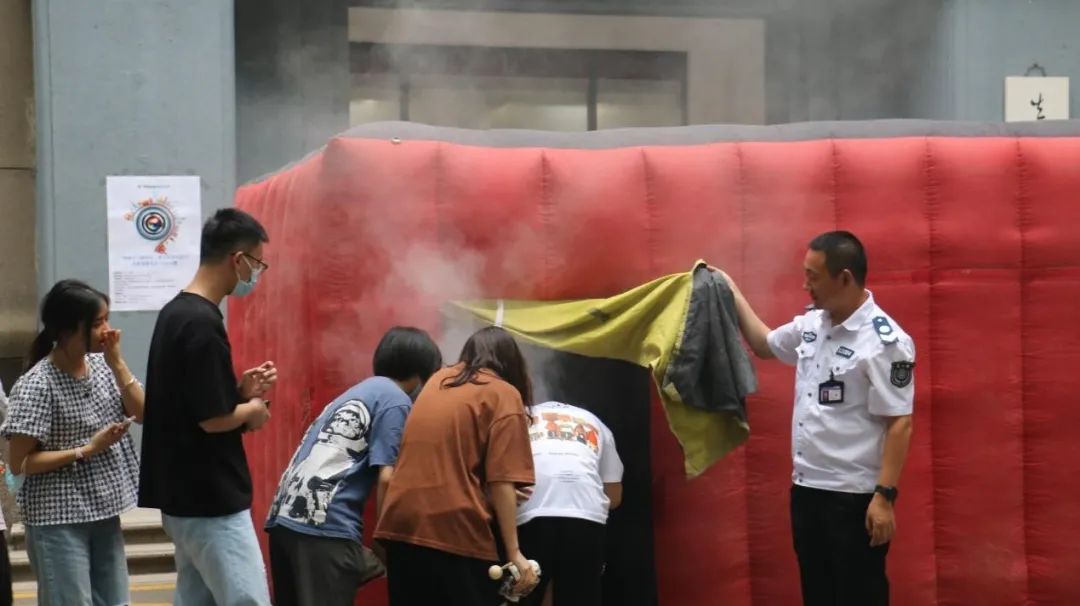 讲座结束后,在张教官的带领下,师生在文博楼门口进行了户外安全演练。张教官首先对演练注意事项进行讲解,叮嘱大家进入演练区后要低姿伏腰,捂好口鼻,带好随身物品。老师和同学们分组依次进行火灾逃生演练。通过此次演练,帮助师生充分了解了火灾发生时的严重性,同时掌握了应对紧急情况时需要的基本逃生方法。
