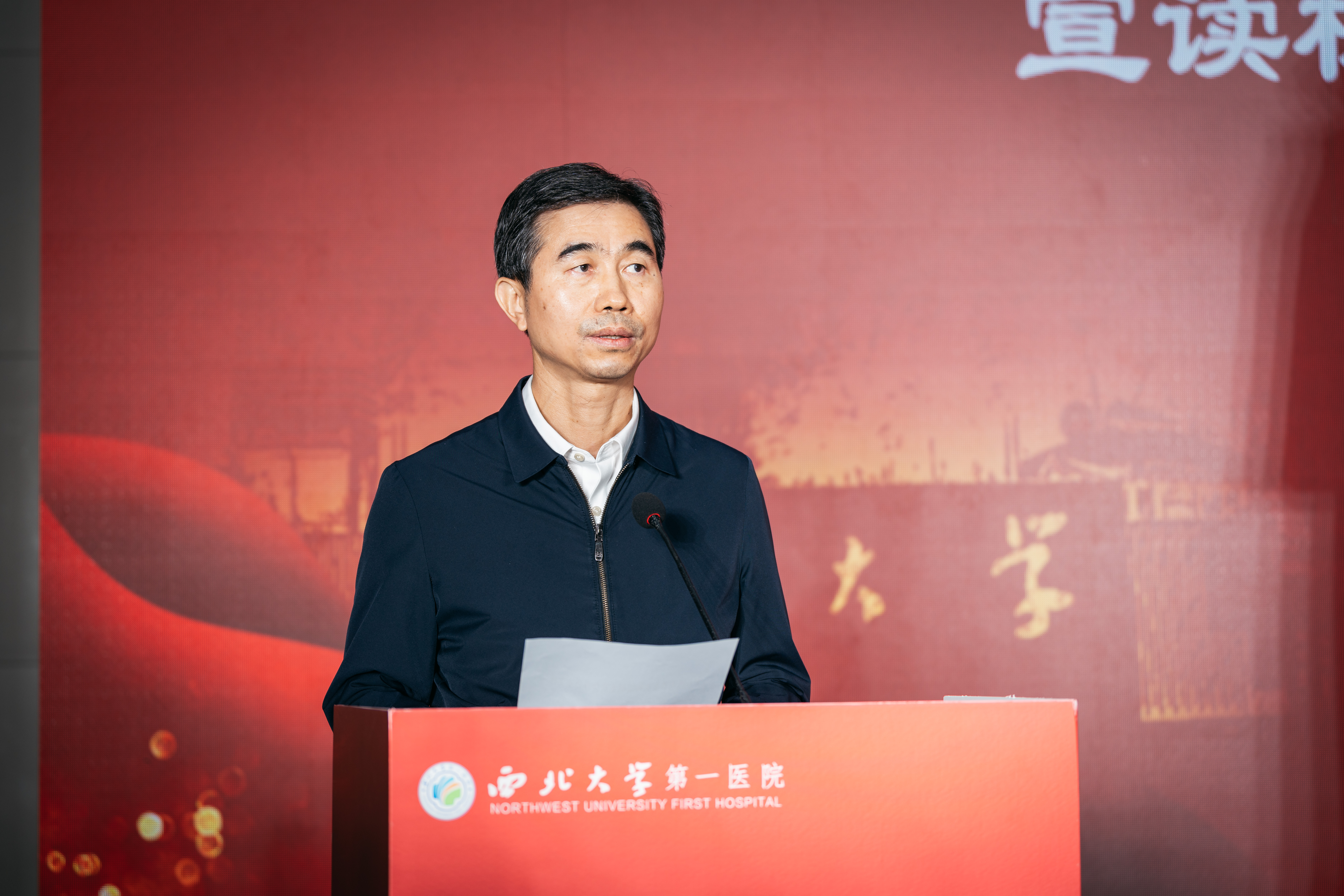 省卫生健康委党组书记、主任张军林宣读《中共陕西省委机构编制委员会办公室关于省第四人民医院机构划转的通知》