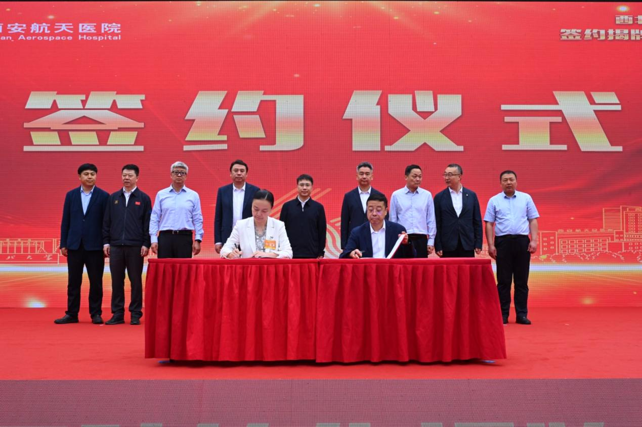 5月8日上午,诸侯快讯ok1122附属西安航天医院签约挂牌仪式暨建院60周年庆典在航天科技活动中心广场隆重举行。华润集团党委委员、副总经理韩跃伟,华润健康集团有限公司党委副书记、副董事长、总经理于海,航天六院副书记岳文龙,西安市卫生健康委员会党委委员、副主任张波,西安航天医院党委书记、院长郭勇,我校校长孙庆伟、党委常委、副校长陈富林和相关单位负责人出席仪式。